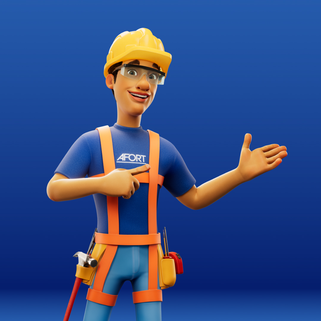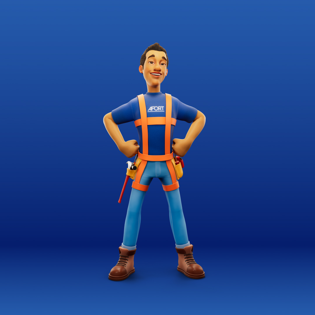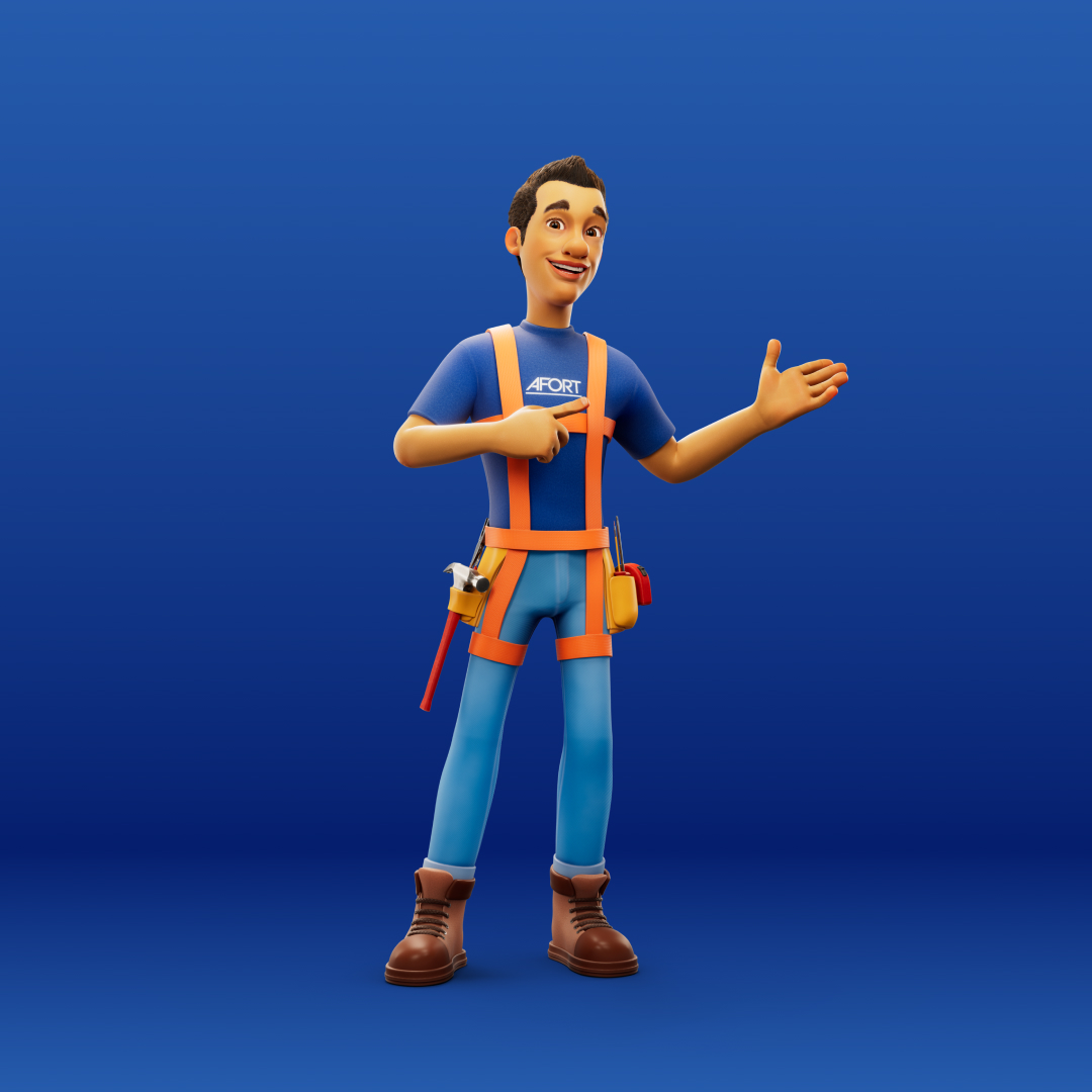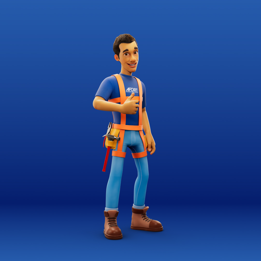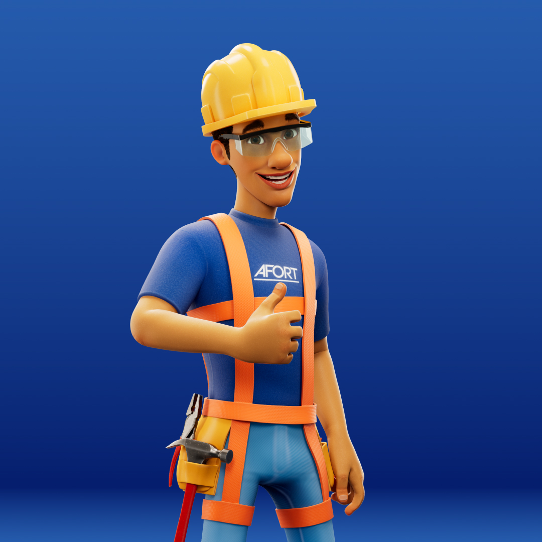 Para a AFORT, criamos um personagem 3D completo, do concept à renderização final. Batista é um construtor desenvolvido para representar a marca com força, profissionalismo e carisma, garantindo uma identidade visual marcante. Criamos versões dele com e sem EPI, trazendo versatilidade para sua aplicação na comunicação da marca.
