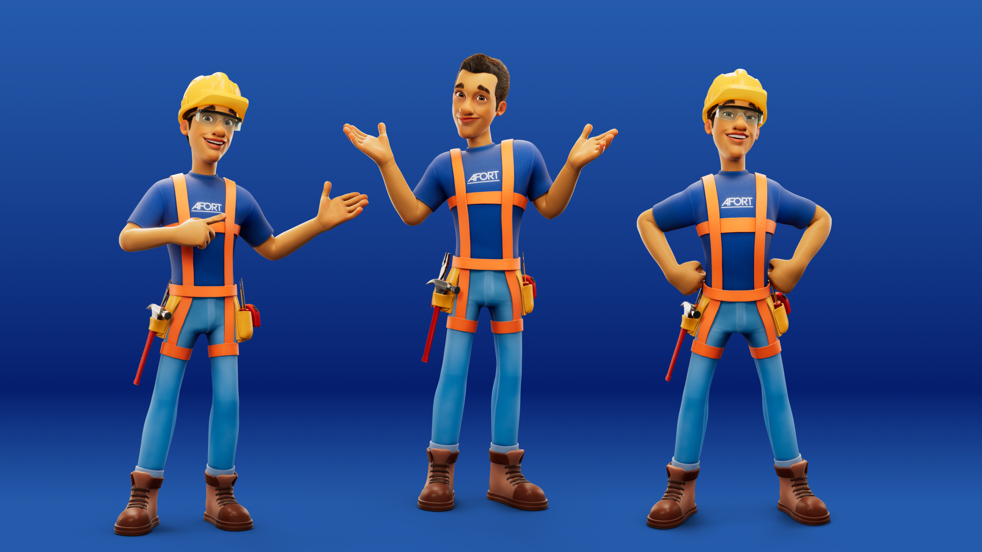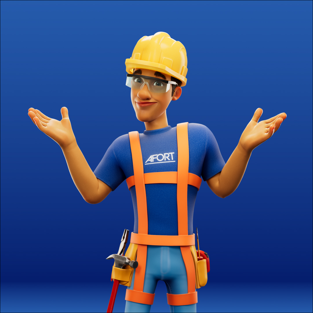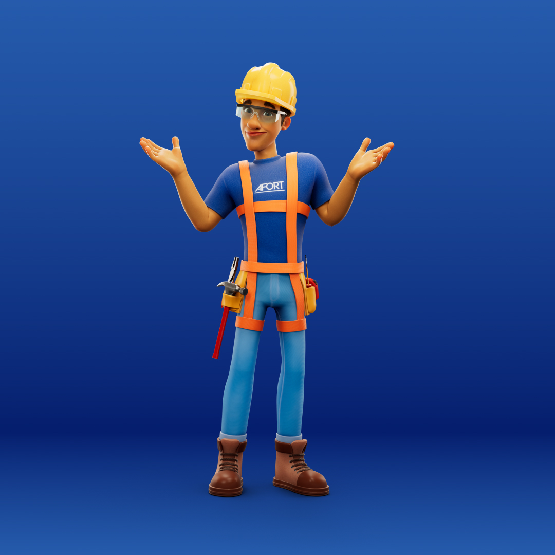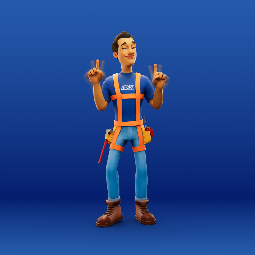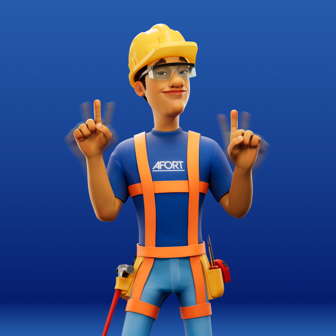 Para a AFORT, criamos um personagem 3D completo, do concept à renderização final. Batista é um construtor desenvolvido para representar a marca com força, profissionalismo e carisma, garantindo uma identidade visual marcante. Criamos versões dele com e sem EPI, trazendo versatilidade para sua aplicação na comunicação da marca.